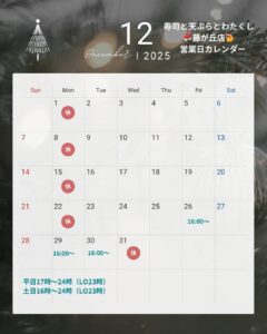 12月1月営業カレンダー