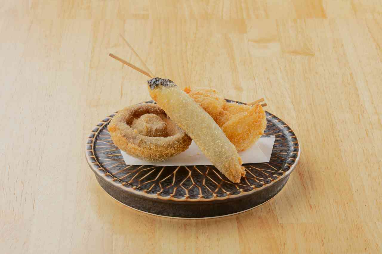 手打ちのこだわり串揚げは、王道はもちろん、気になる変わり種まで多彩な品揃え。