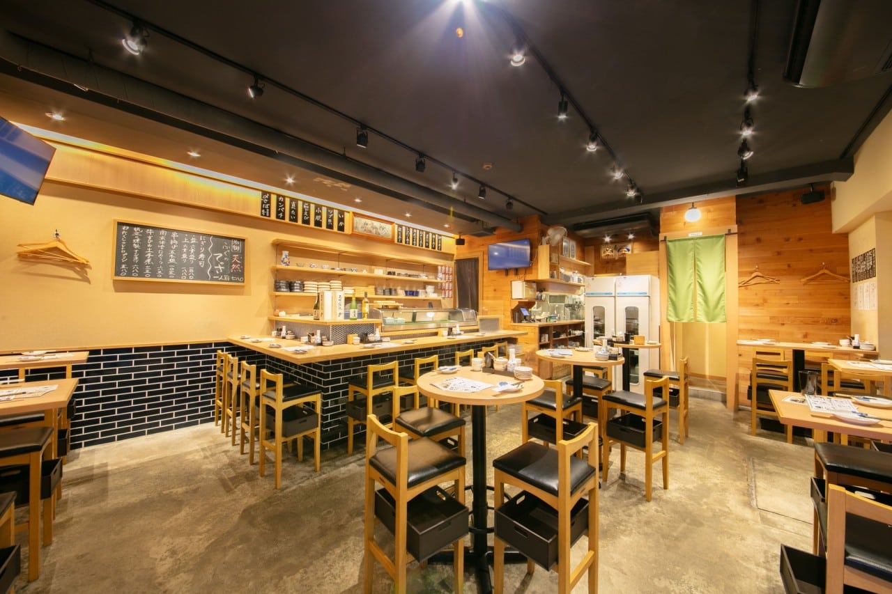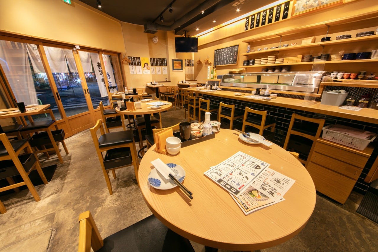 明るくにぎやかな店内で、自慢の握り寿司や揚げたての串揚げをお楽しみください。