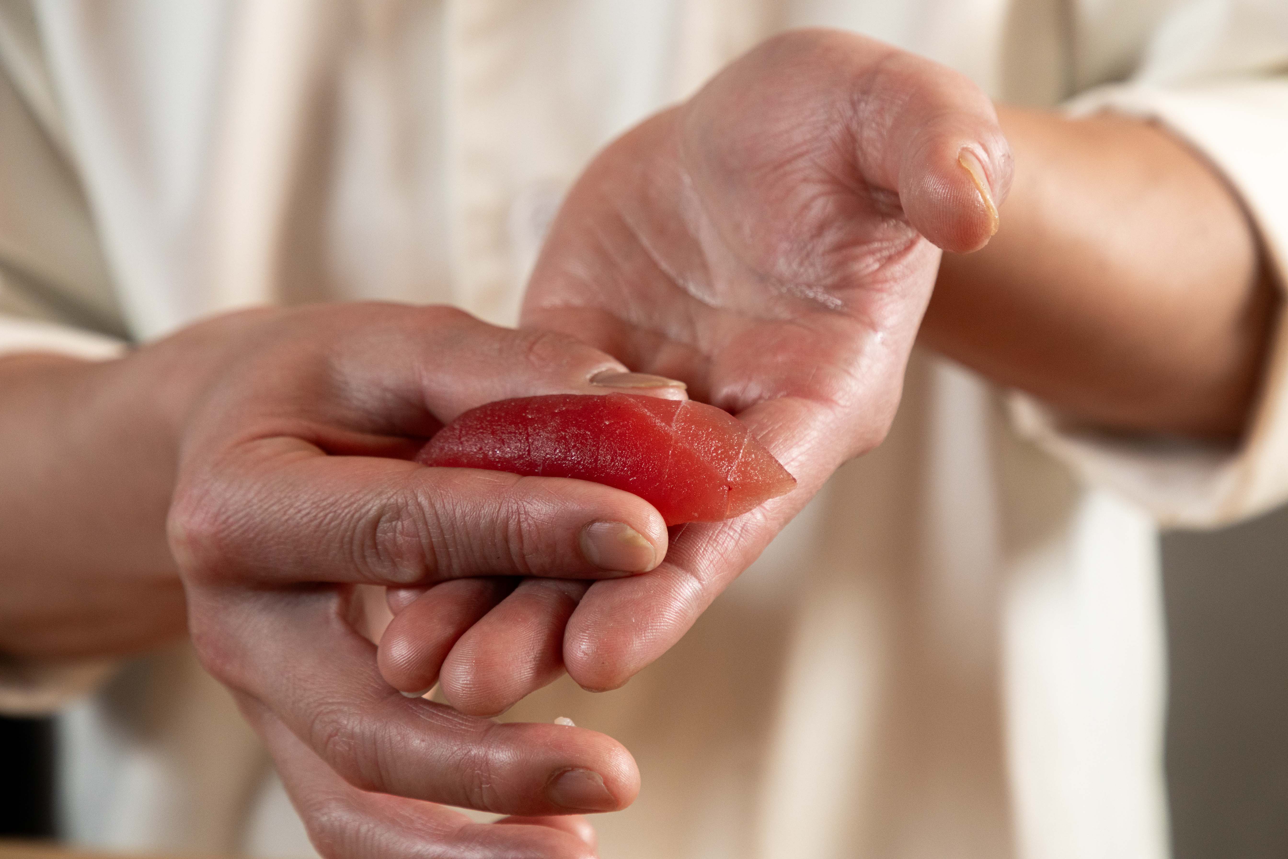 赤酢を使用したすし酢をあわせた江戶前風寿司を