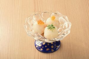 さっぱりとした鯛を、ひと口サイズの手毬寿司で。